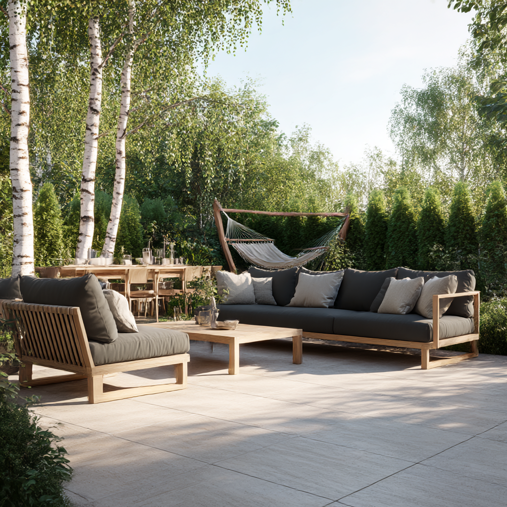 oleskelualue, oikeilla ulkokalusteilla voi luoda toimivan, viihtyisän ja